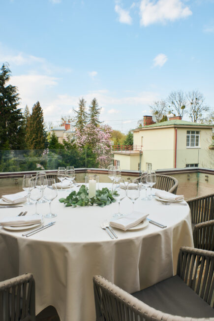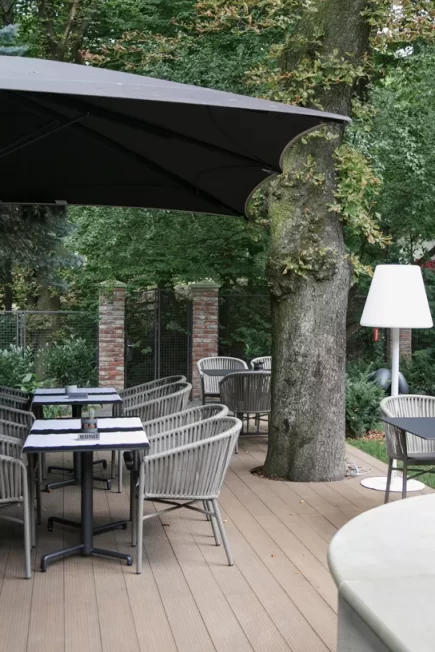 The outdoor terrace is perfect for family outings, gatherings with friends, or business meetings.