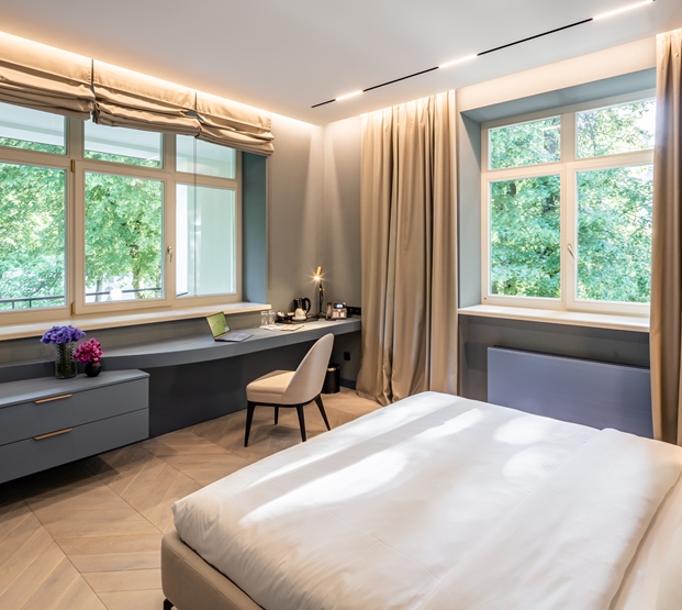 The suites of this category have spacious homey living room and a large bright bedroom, and outside the window there is our green garden, which is going to delight your eye.