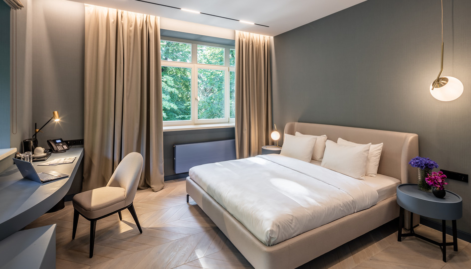1. Excellent service - the team tries to help you with all your questions 2. Clean and well-designed room with a view on a castle and park 3. Nice buffet breakfast with unlimited coffee, good-quality fish (salted salmon), fruit salads and vegetables 4. Location is just perfect, 15-20 mins to the city center and close (5 mins) to large refreshing park for jogging and yoga. 5. Design of bathroom is thoughtful and fashionable. 6. This buildings have a long and nice history and owners respect and embrace it. We were living in a standard room with a balcony. Не сподобалося · When we stayed there was no warm breakfast option, or ability to order something instead of buffet. As I assume because of preparation for a birthday party.