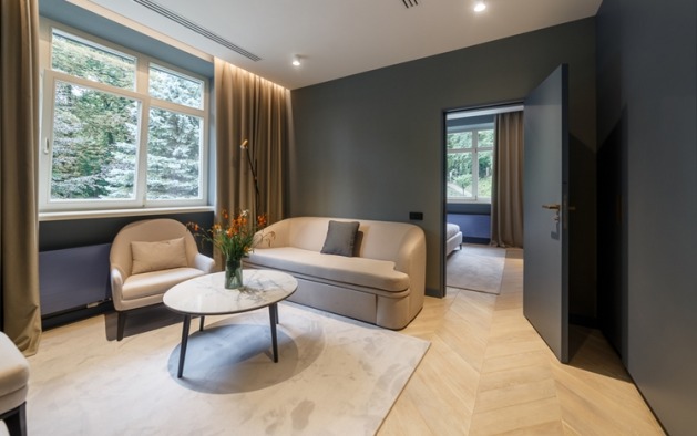 The suites of Junior suite category with an area of 38 sq.m. are located in MODERN villa. Each suite of this category has two rooms: a living room and a bedroom. Some suites of this category also have a balcony. This category of suites is very comfortable for customers with children.